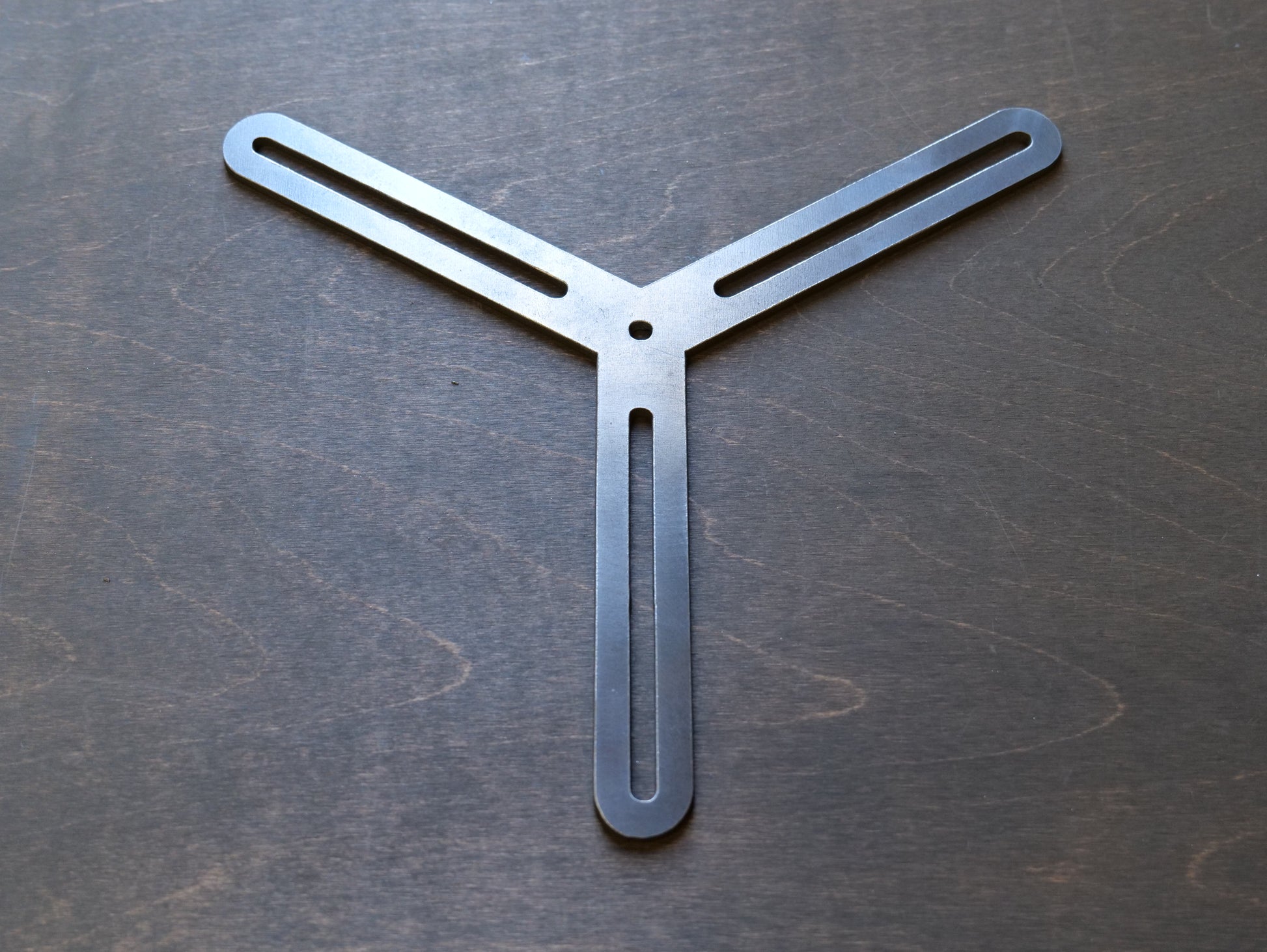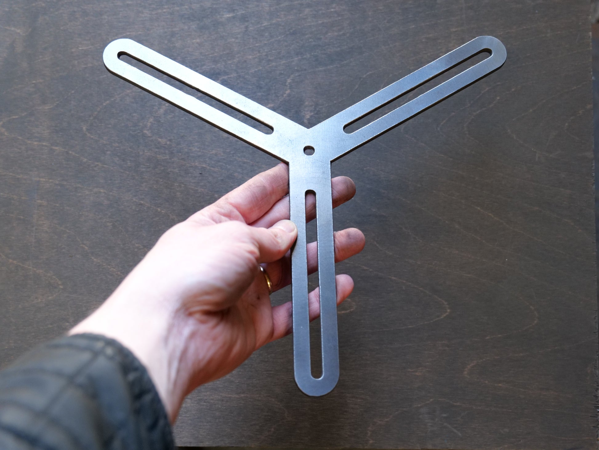 We designed this tool to help you locate 120 degree increments on your project. This can be especially helpful in marking out the location of feet on a trivet.