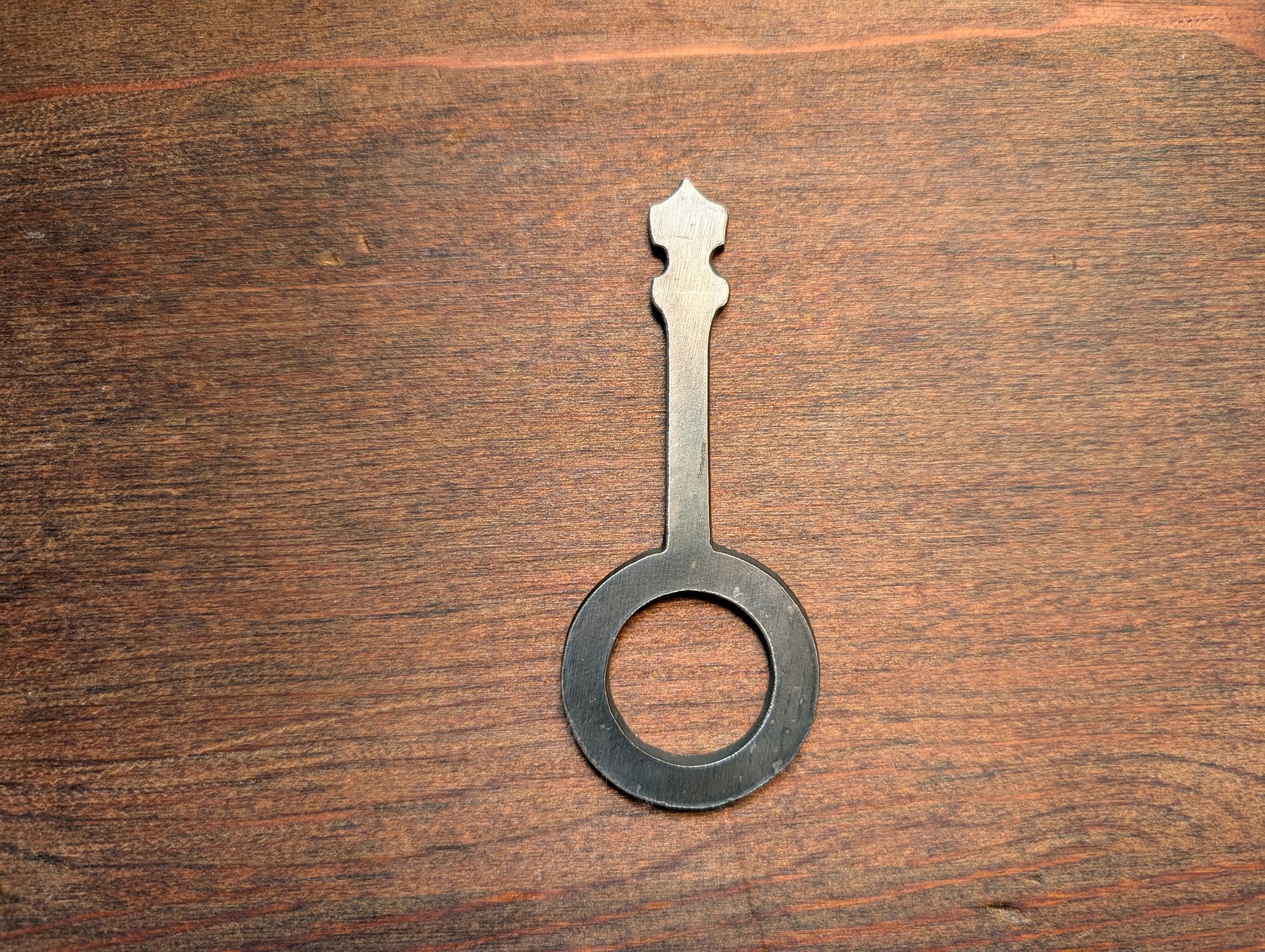 This blacksmith blank is a banjo bottle opener blank. It can be stamped or textured for ornamentation, and you can drive in the tab that pulls the bottle cap.