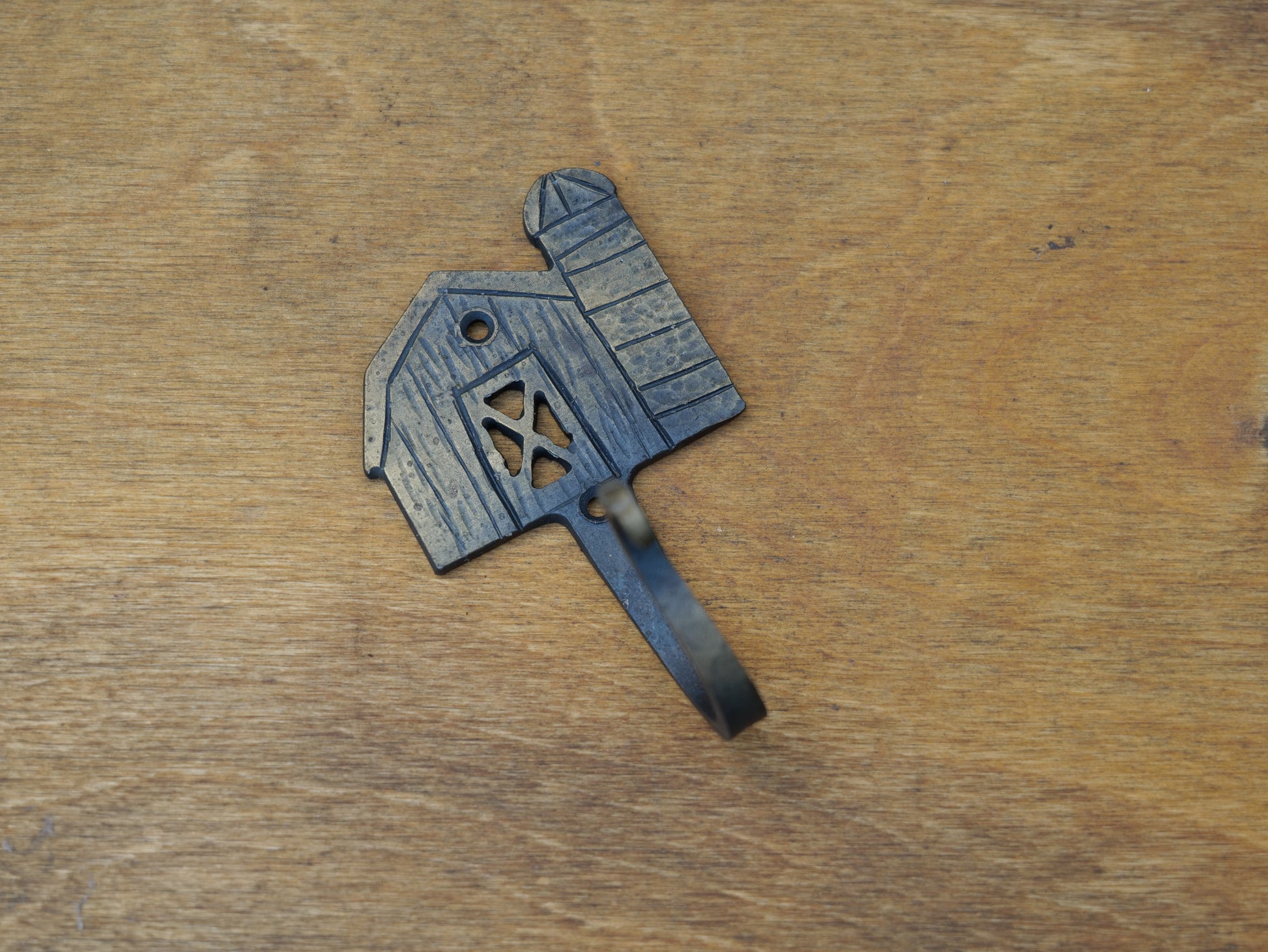 This blacksmith blank is a barn hook blank. It can be decorated with chiseled lines or just textured. The first and last photo show an example of how you could make the finished forged product.