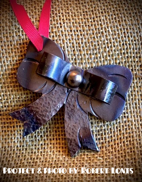 This blacksmith blank is a bow ornament blank. It can be decorated as a using different size chisels, punches, and metal stamps. You can see an example of what the ornament may look like completed in the last photos.