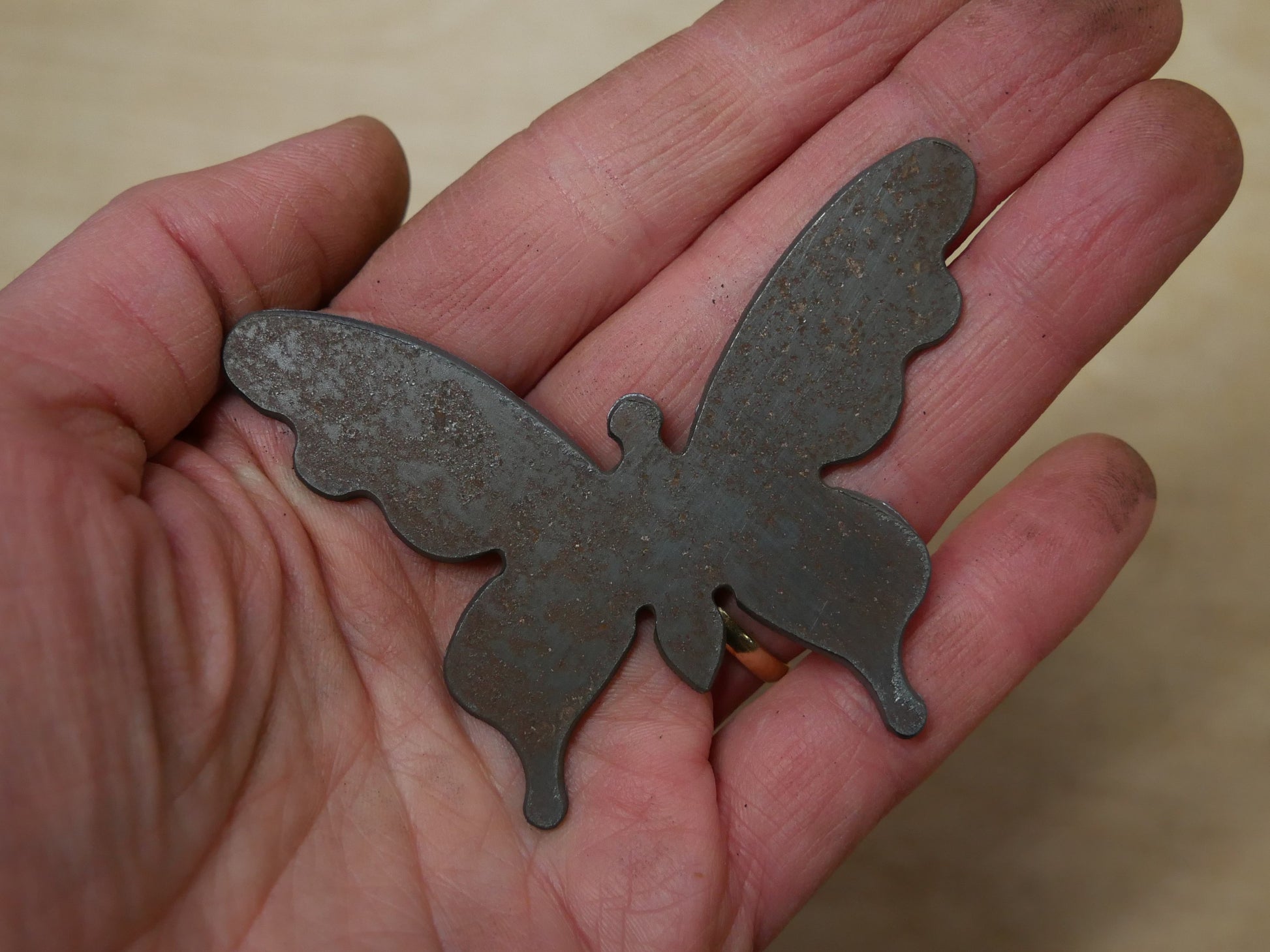 This blacksmith blank is a butterfly ornament blank (or you can add it as an accent to another project).  It can be decorated as a using different size chisels, punches, and metal stamps.