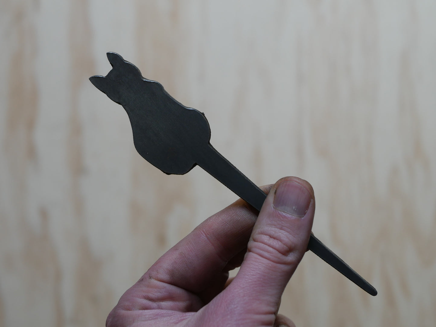 This blacksmith blank is a cat hook blank. It can be decorated with chiseled lines or just textured. Great if you have a house cat or shop cat! The first and last photo show an example of how you could make the finished forged product.