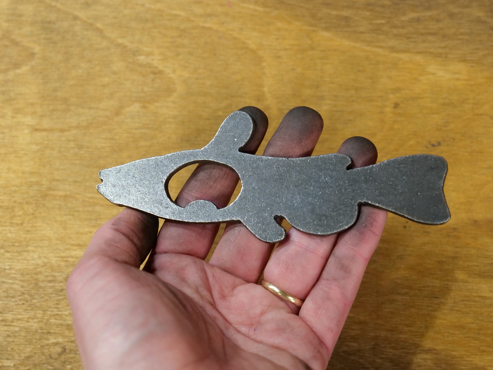 This blacksmith blank is a catfish opener blank. It can be stamped or textured for ornamentation, and you can drive in the tab that pulls the bottle cap.