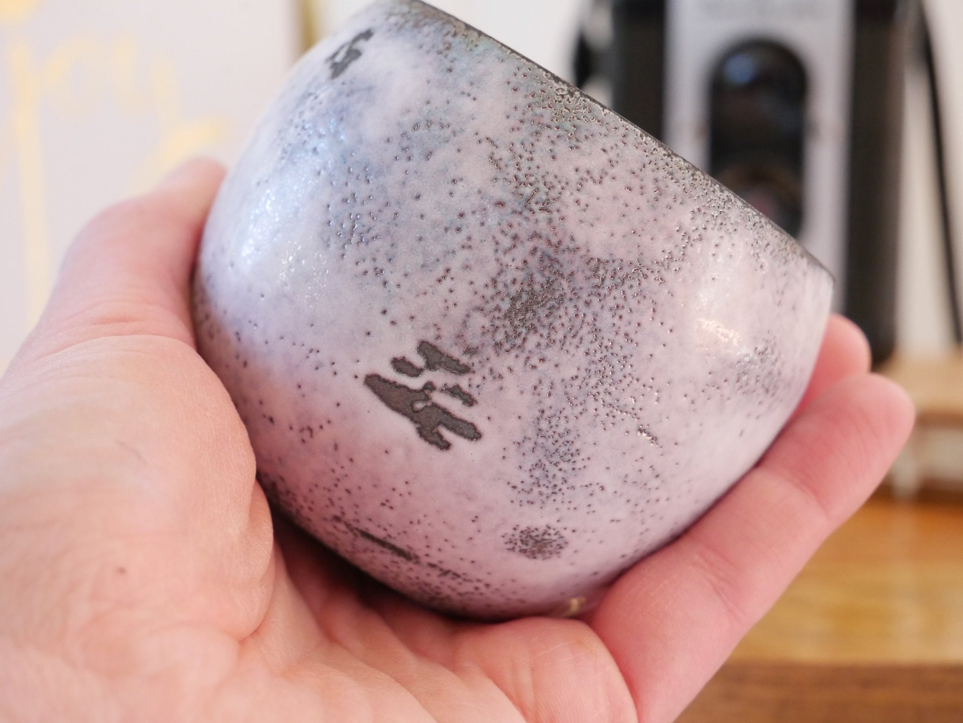 The inside of the pot is raw copper that is oxidized and has interesting coloring.