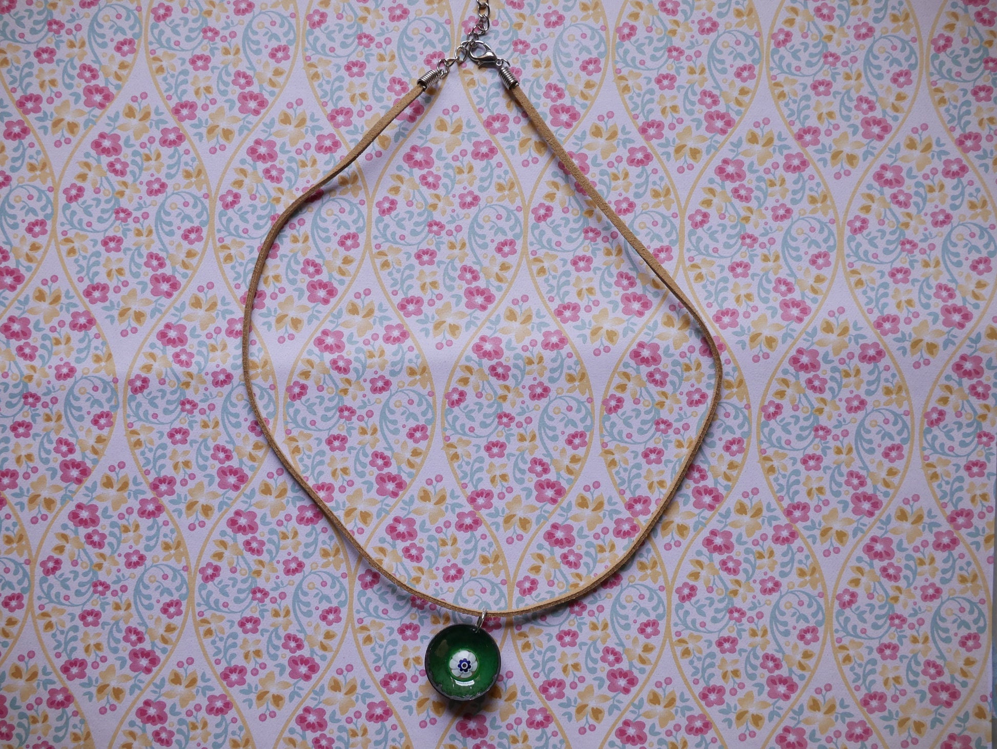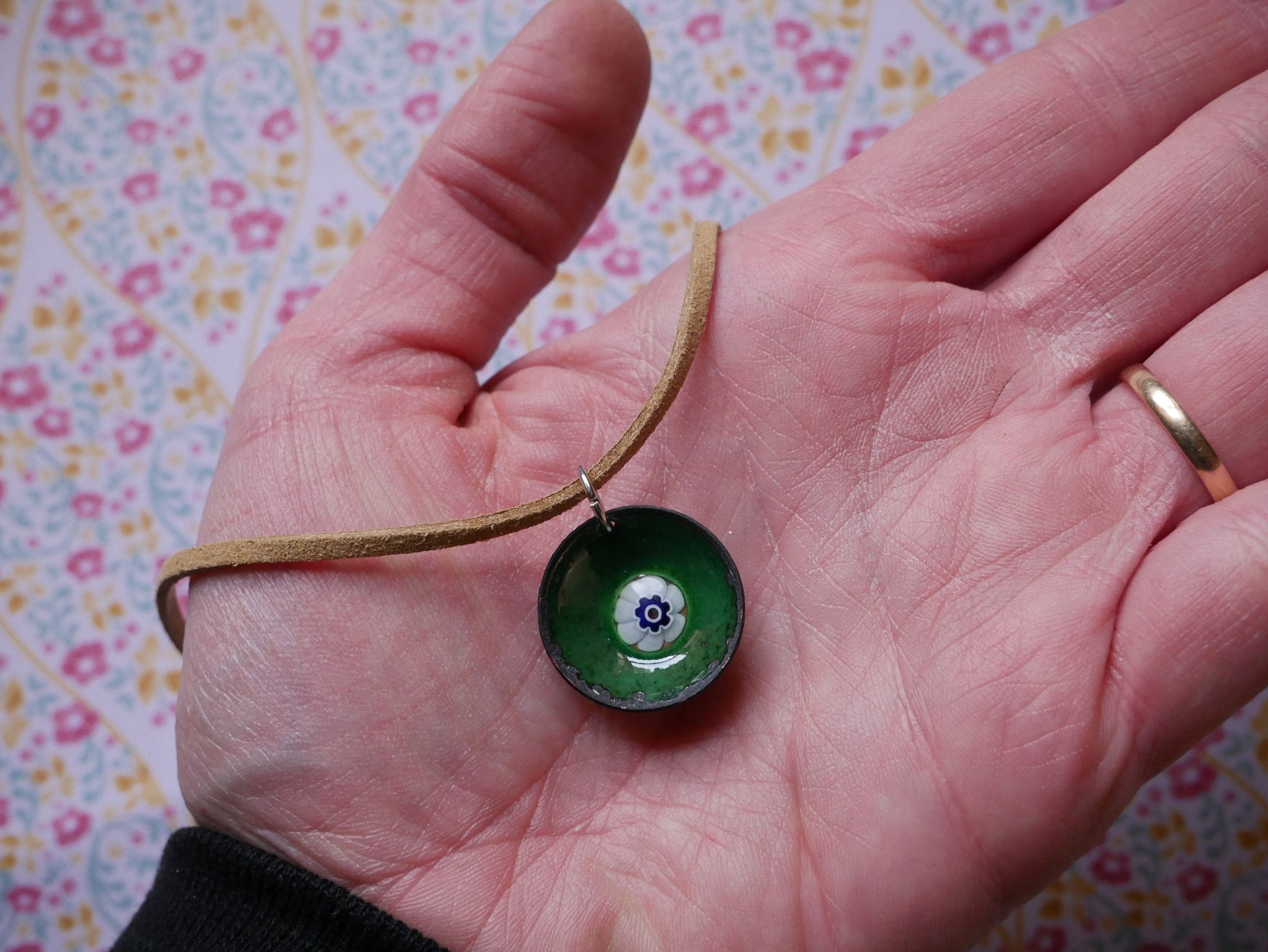 Flower Enameled Domed Necklace * Necklace for Her * Jewelry for Women * Handmade Torch Fired Enamel Necklace * Circle Colorful Necklace