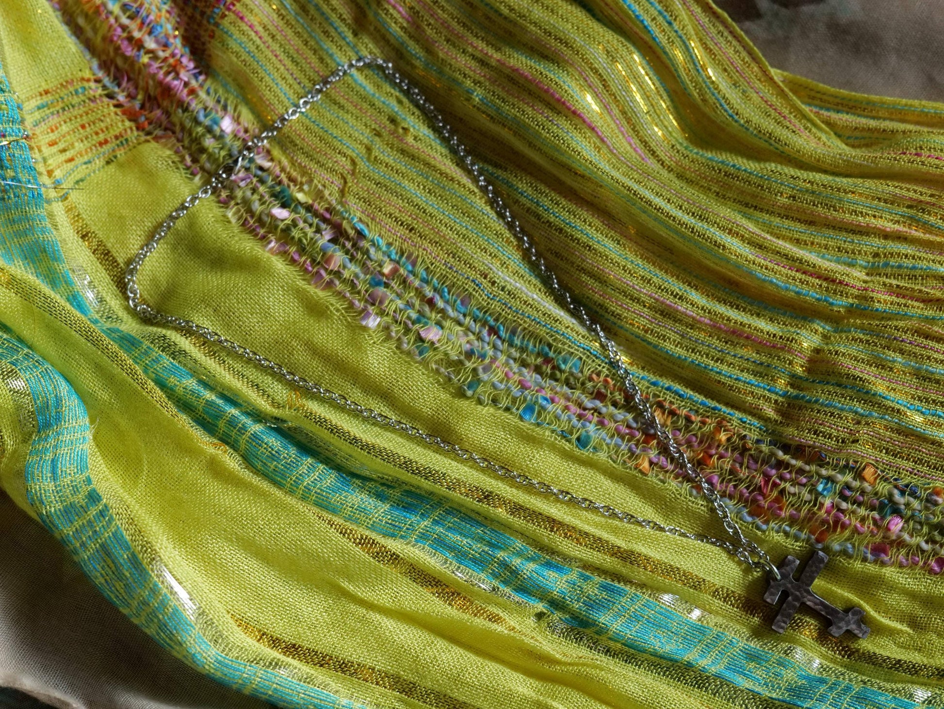 This small hammered tri bar cross necklace was made by Jessica Adams of Christ Centered Ironworks. The hammered textured Orthodox cross pendant is made from mild steel. The metal three bar cross necklace features a hammered texture. The steel cross measures 1" long and is made from 1/8" thick mild steel (I offer a larger version of this necklace).