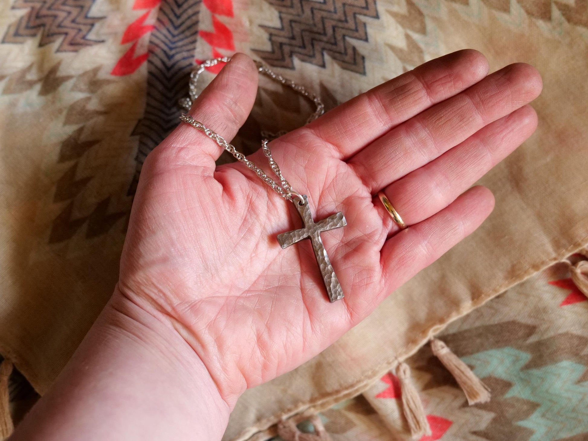 Hand Forged Steel Cross * Hammered Cross Pendant * Christian Gift for Men Women * Forged Cross Necklace * Handmade Tapered Copper Necklace