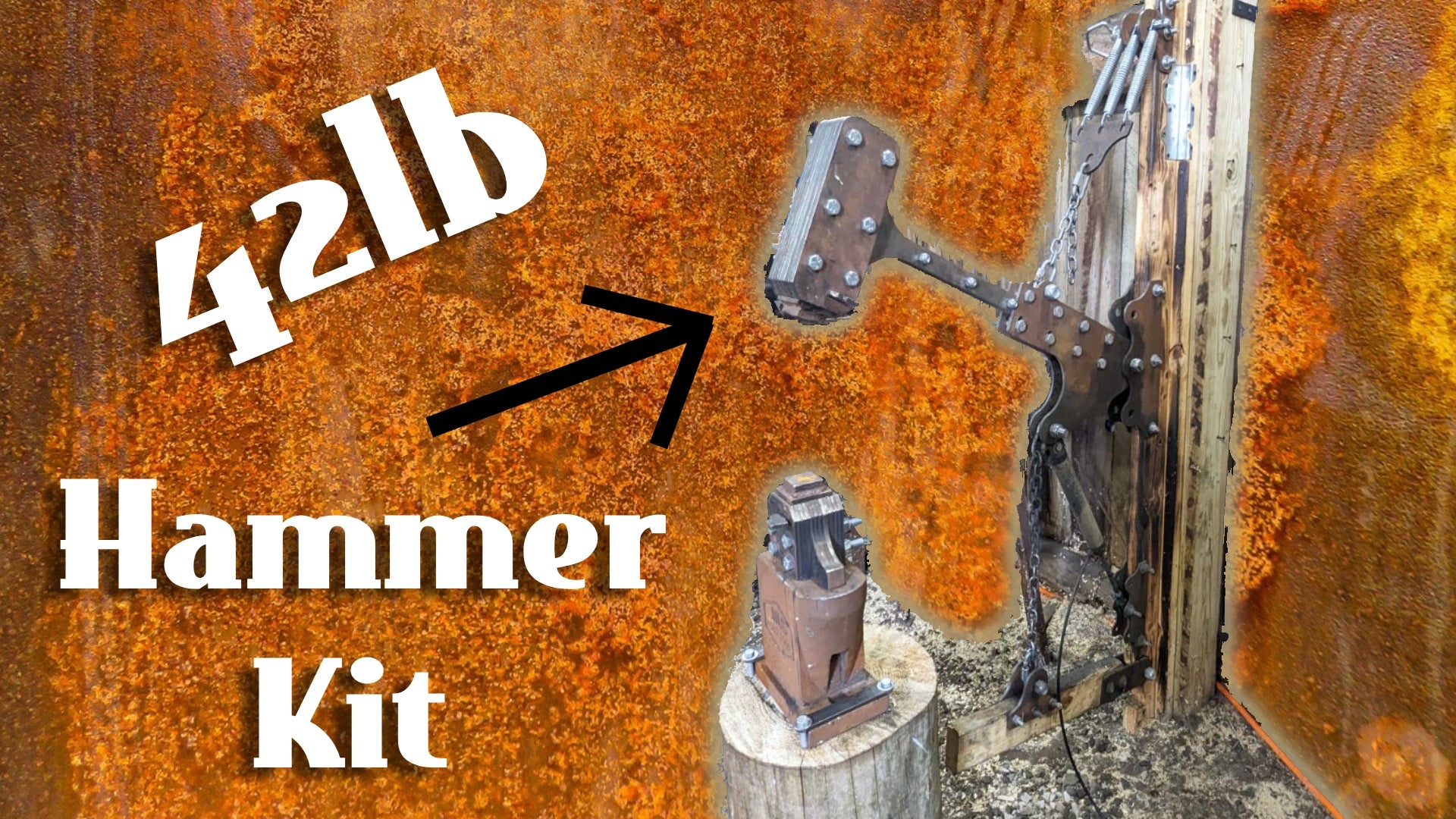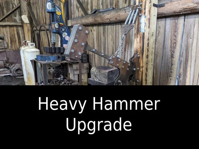 The heavy hammer upgrade kit provides a 42lb hammer head weight. It has a bolt together design for easy assembly. Included is a new, interchangeable die system that works with 1” x 1” hardy tooling. Also included is a bottom die block. We include a hardy stem and flange kit for welding your own dies. The heavy hammer upgrade has an upgraded spring pack to handle the increased weight.