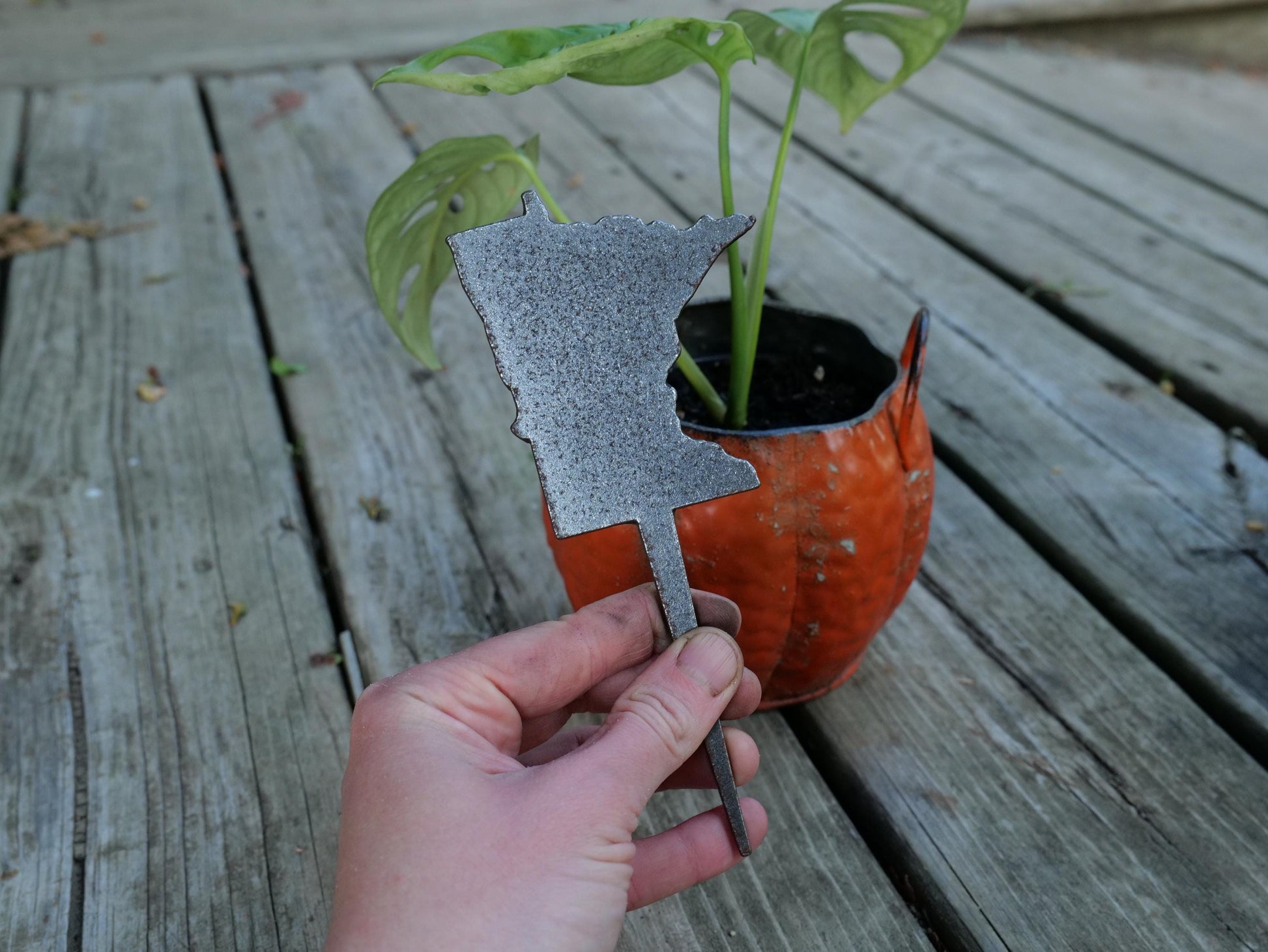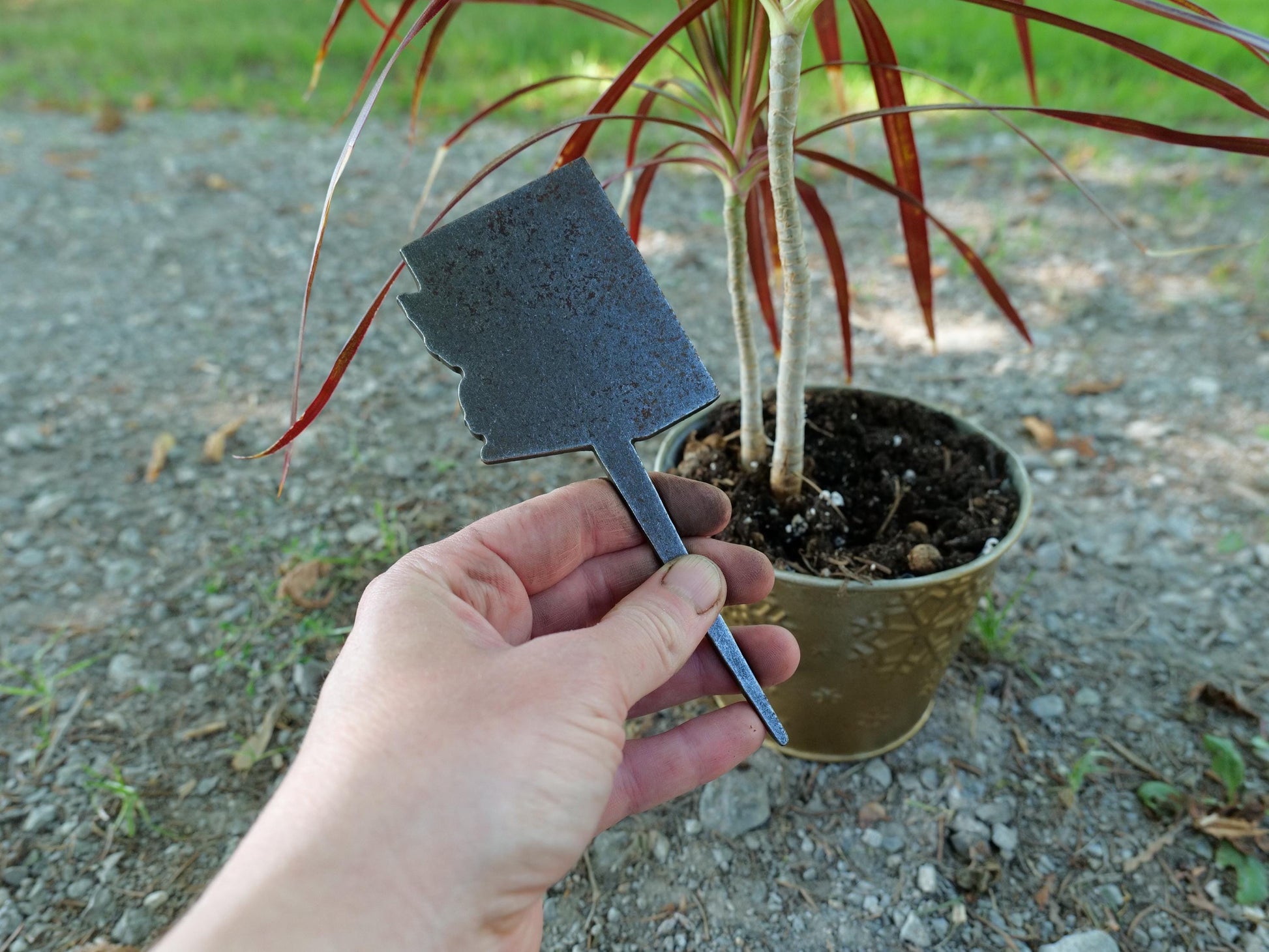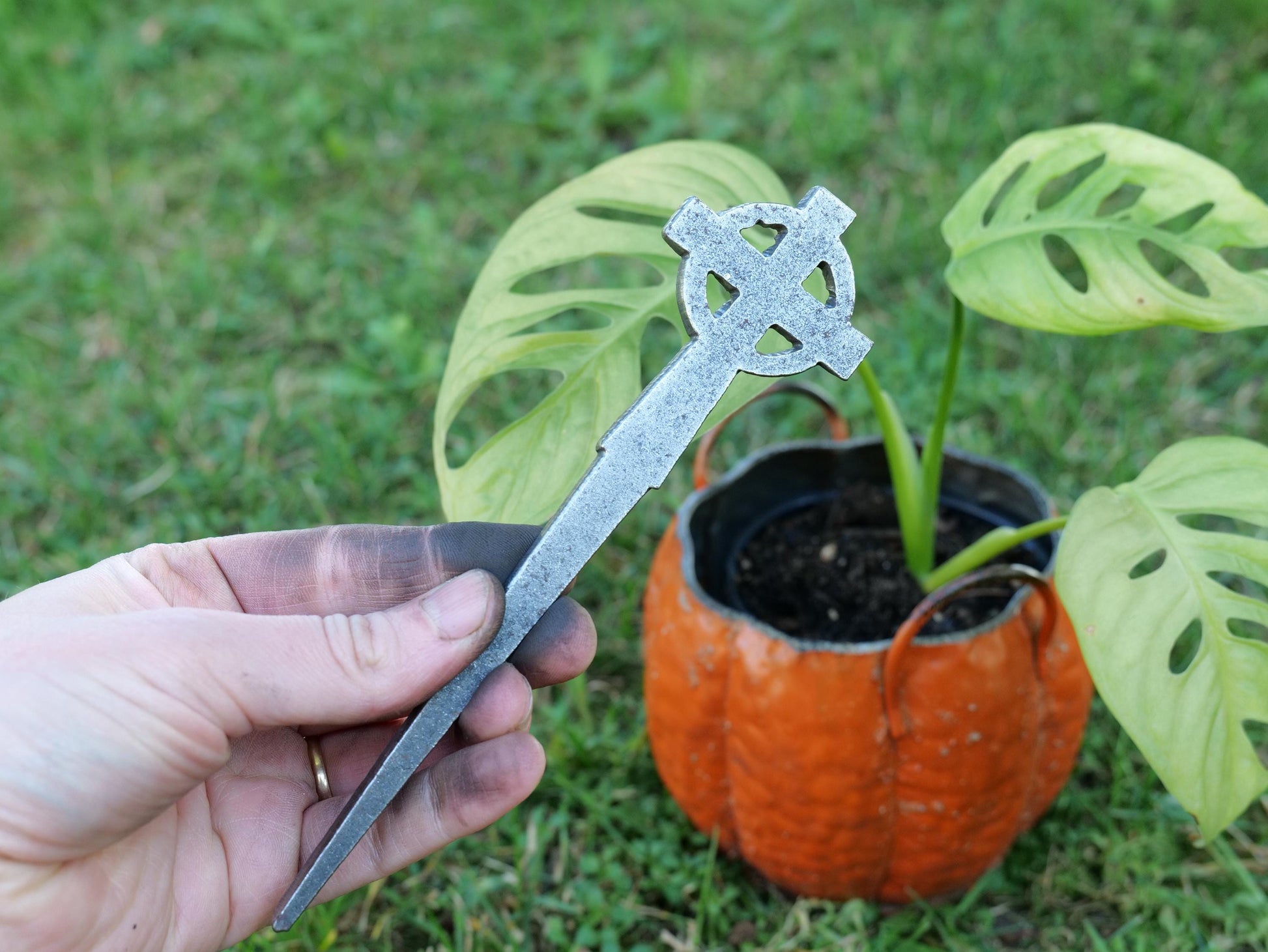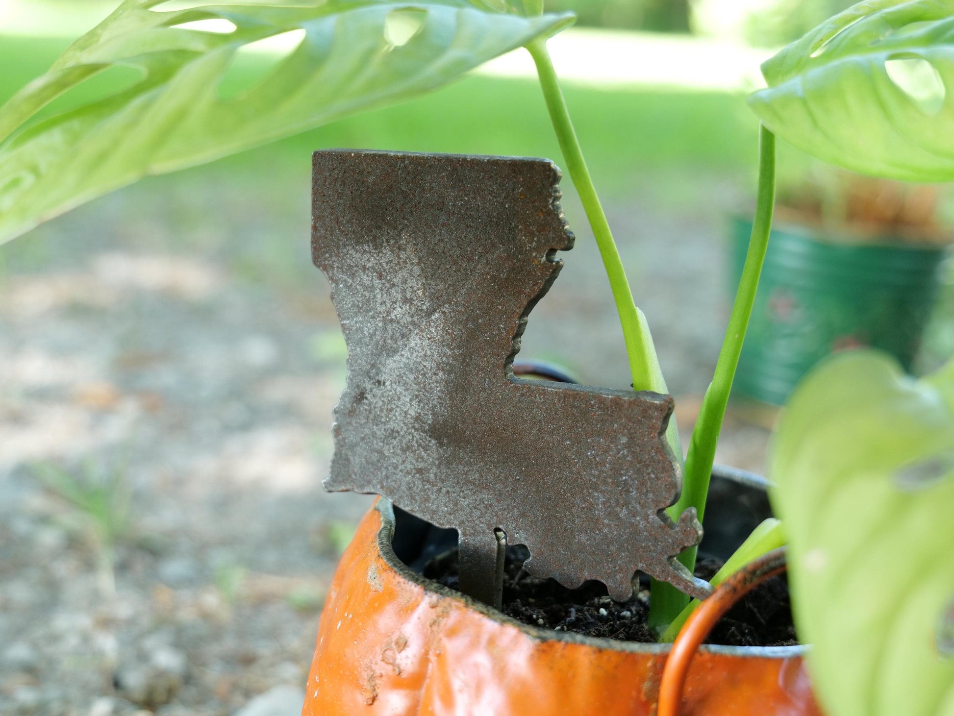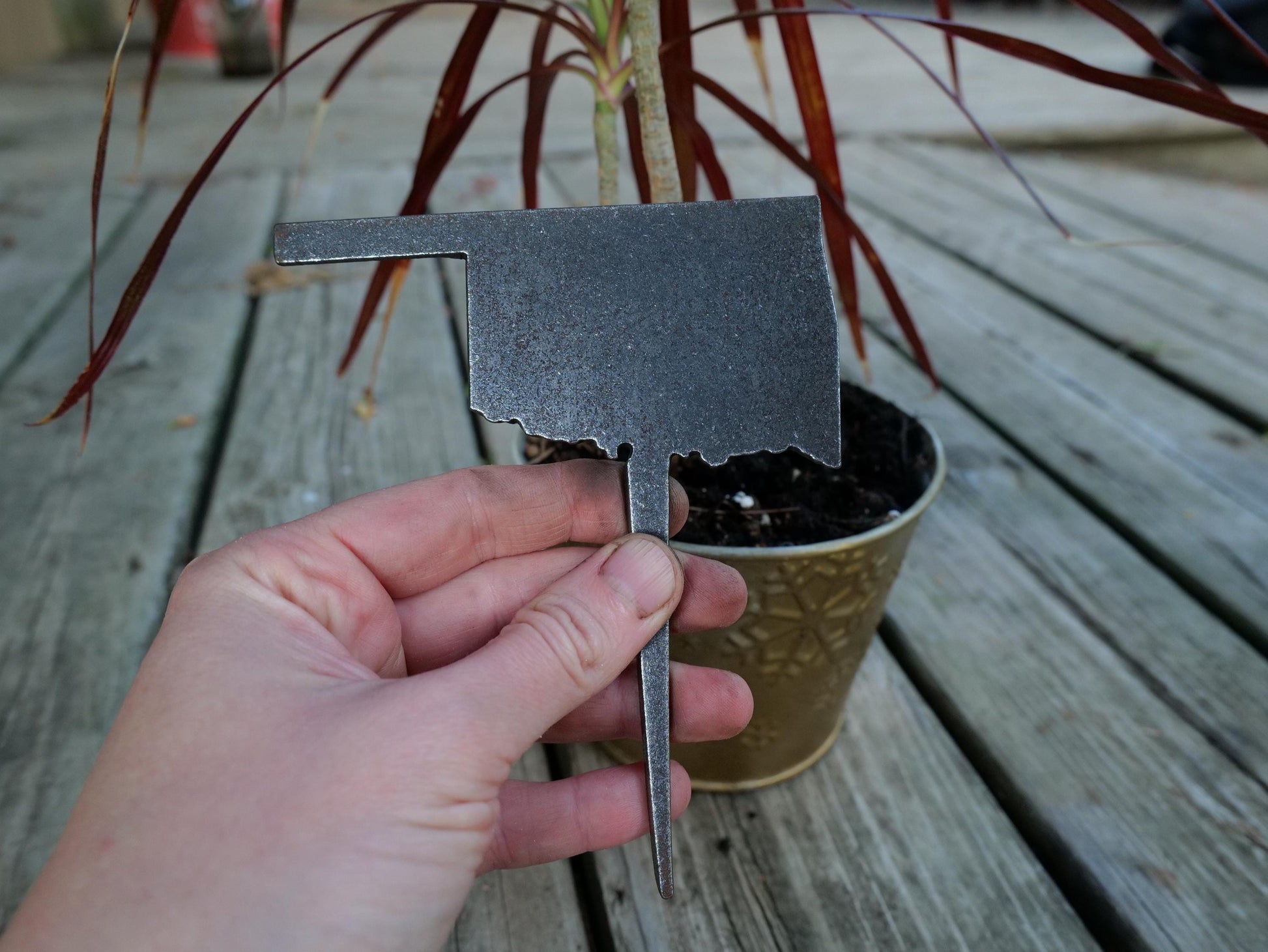 This sturdy apple garden stake is made from 1/8" thick mild steel. The house plant decoration is created by using plasma cutting technology right here at Christ Centered Ironworks. Overall dimensions measure: 1.6" width x 5.6" overall length.