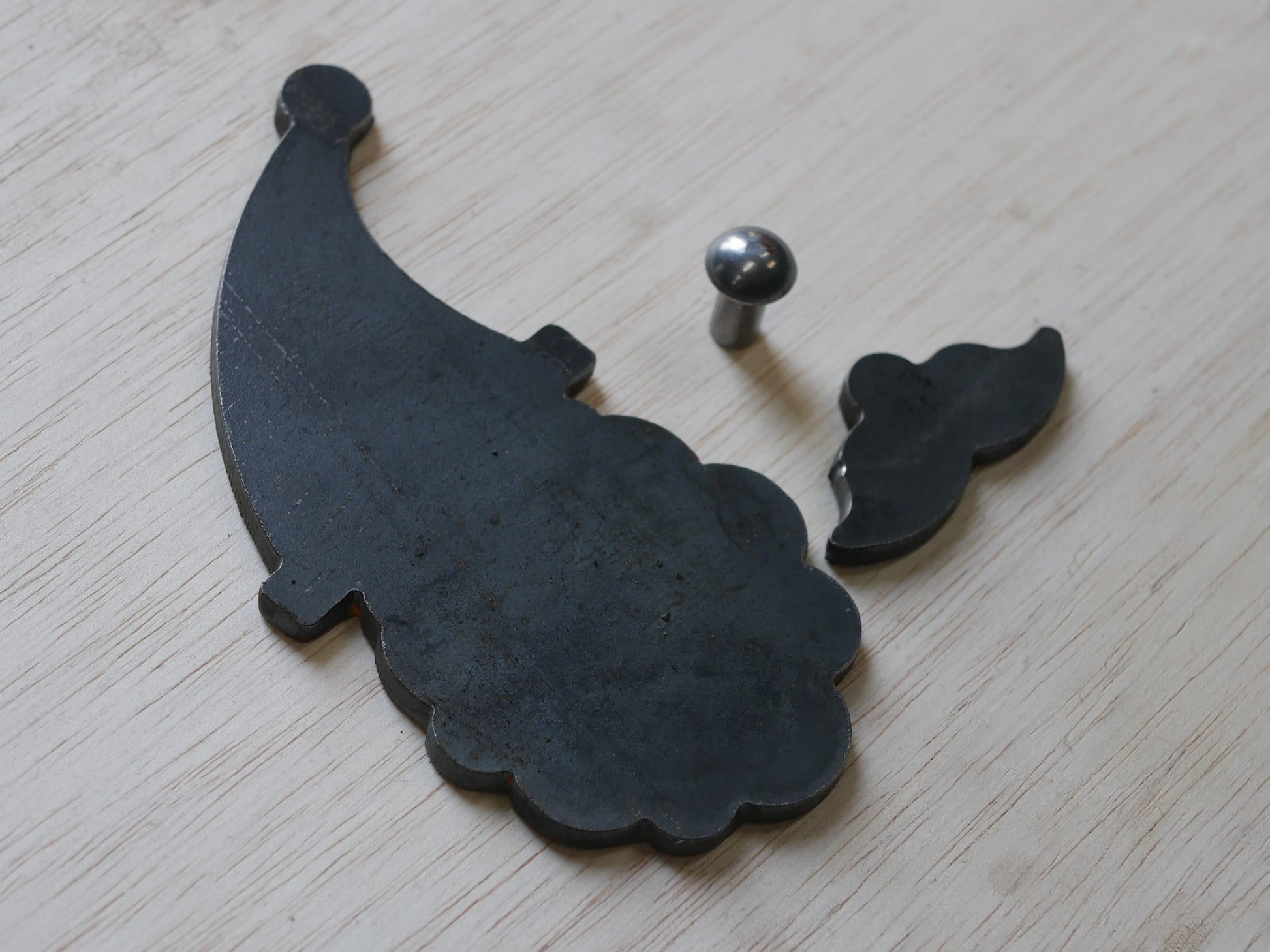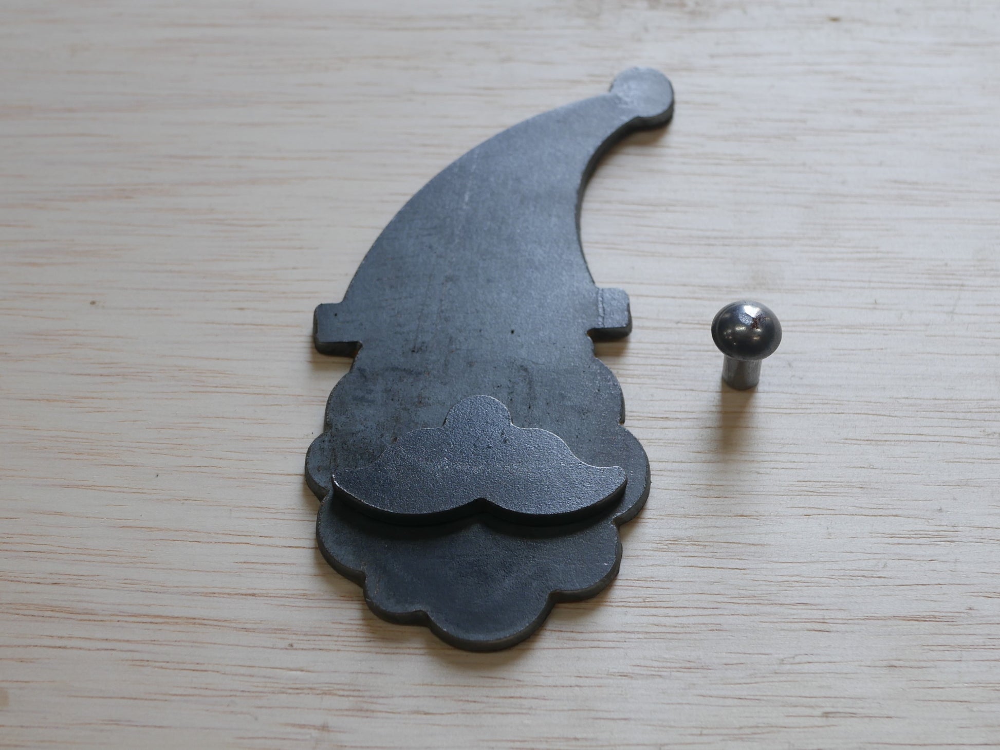 This blacksmith blank is a layered Santa ornament blank. It comes with the Santa head, the beard, and a rivet. The last photos show what it can look like completed.