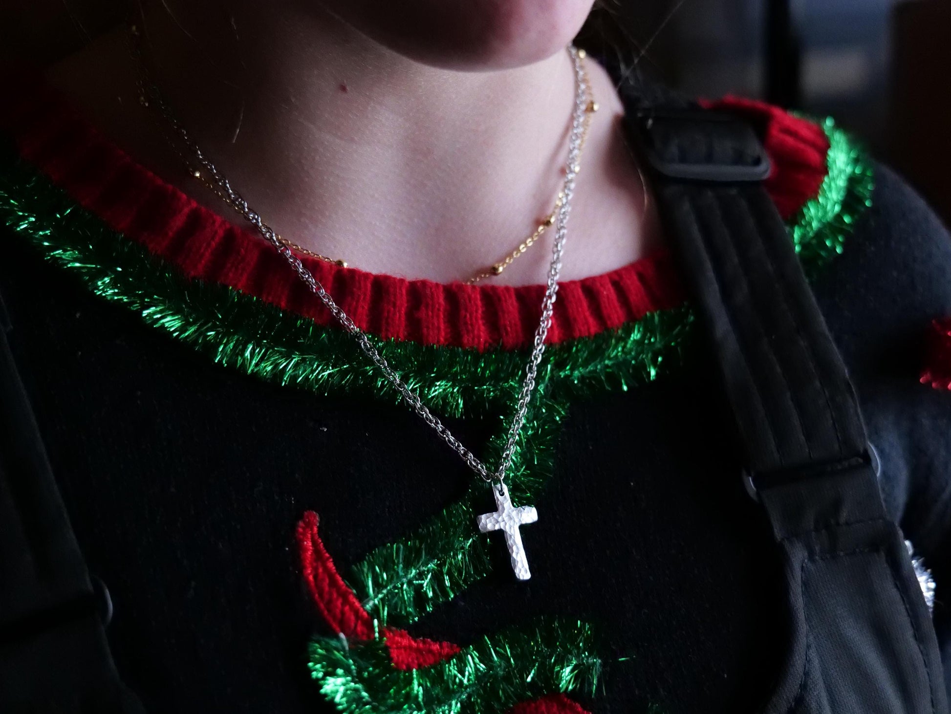 This forged cross necklace was made by Jessica Adams of Christ Centered Ironworks. The hammered textured cross pendant is made from solid mild steel. The mild steel cross necklace features a hammered texture.