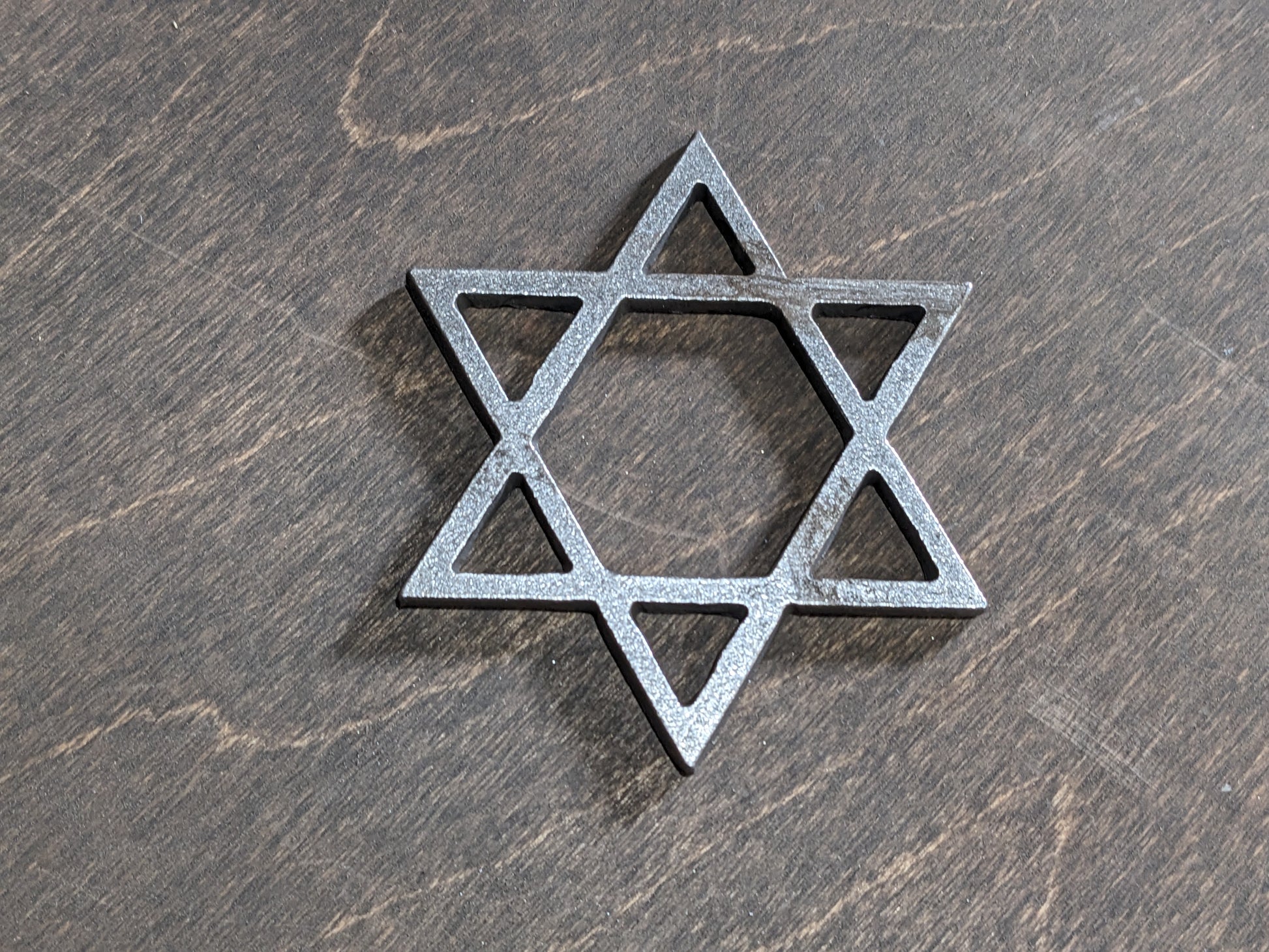 This blacksmith blank is a star of David ornament blank. It can be decorated as a using different size chisels, punches, and metal stamps.