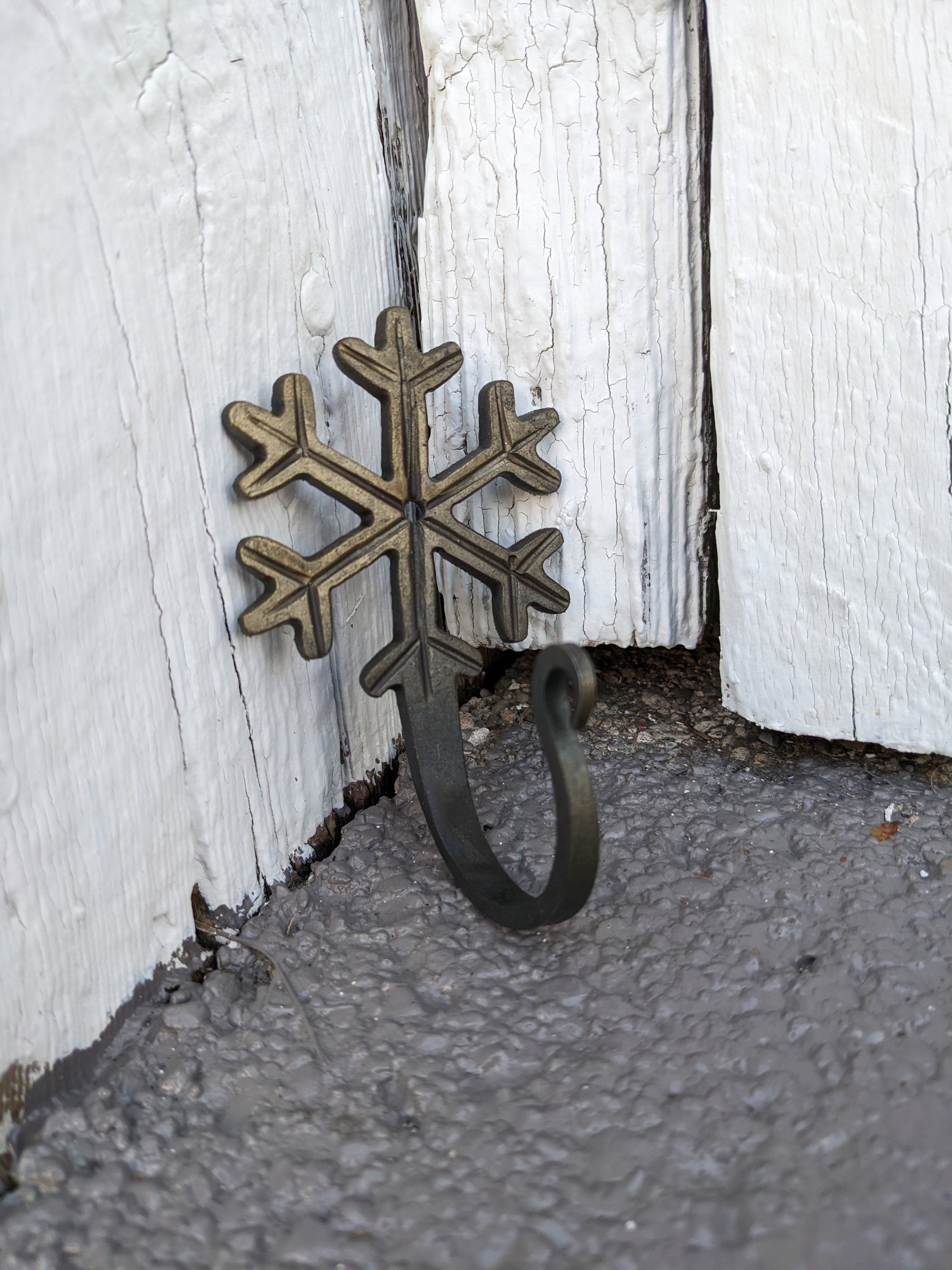 This blacksmith blank is a snowflake hook blank. It can be decorated with stamping or just textured. The first and last photo show an example of how you could make the finished forged product.